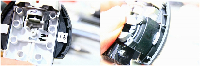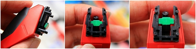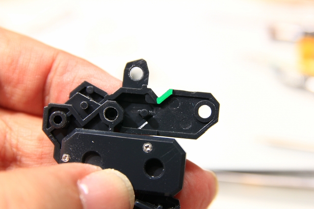 内部。WRでは白パーツが沈んで緑ストッパーで固定されます。