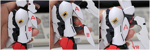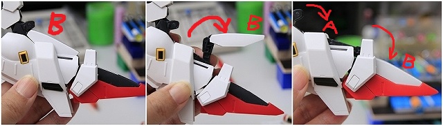 こういう可動になっています。ヒザのフェアリングAがスネに移動。
