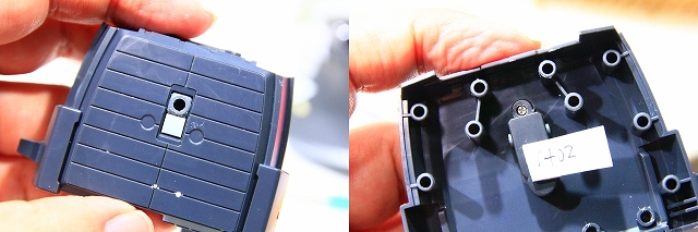 背中プレートにセットされるパネル。センターが少しズレていますので位置を修正し、ネジで固定。