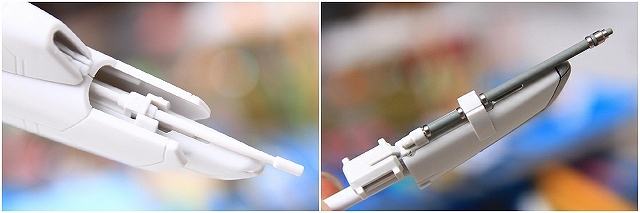 なおフェアリングBとのクリアリングを確保するため、白いパーツが収納されるようになっています。すごい。