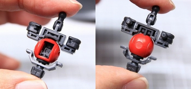 胸のセンサーは透明パーツです。これは発光もできるし塗り分けもできるし、そのままでもOK。いいパーツですね。