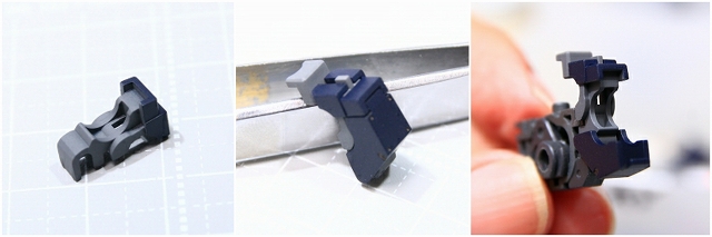 じつは首や腰やヒザなど含めた全関節の中でいちばん難しい部分かもしれない。設定画でもココのデザインがあやふやだったり、キットではバッサリ省略されてたり。