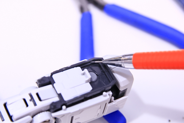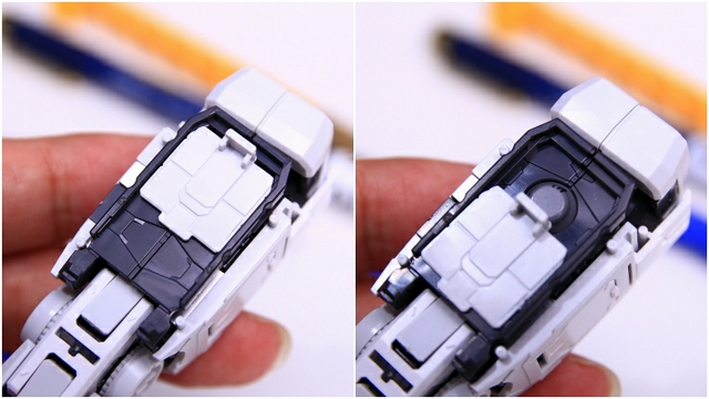 PGUガンダムの腕のスライドハッチです。ここはノーマルで組むとスライドが固いです。スムーズに可動させるためにはグリスなどを塗るのが一般的ですが・・・
