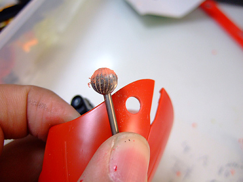 またまた「丸ビット」の登場。バリを落とし、面取りをして完成。 丸ビットもプラプラの「ツール」コーナーで販売中。 |