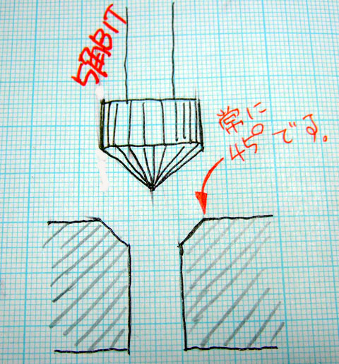 5角ビットは、面取が常に45度になる。