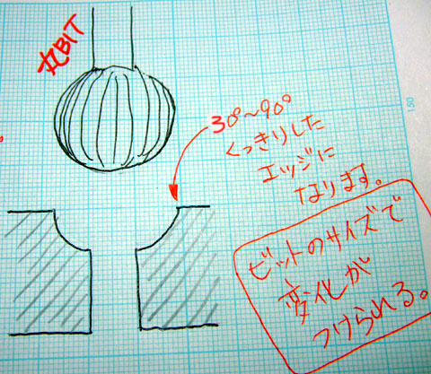 丸ビットは、面取に変化が付けられる。