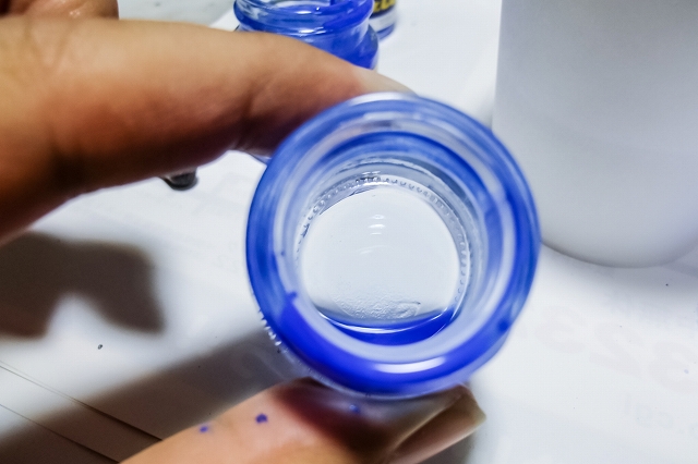 わかりやすくするため、塗料を抜いた状態で撮影。ビン底に固まった塗料が残っています。