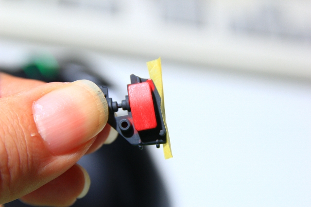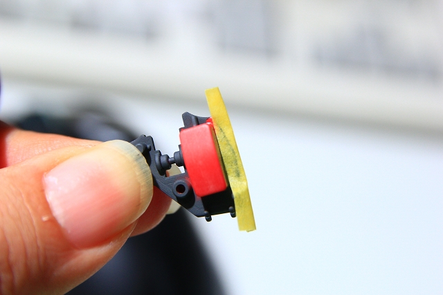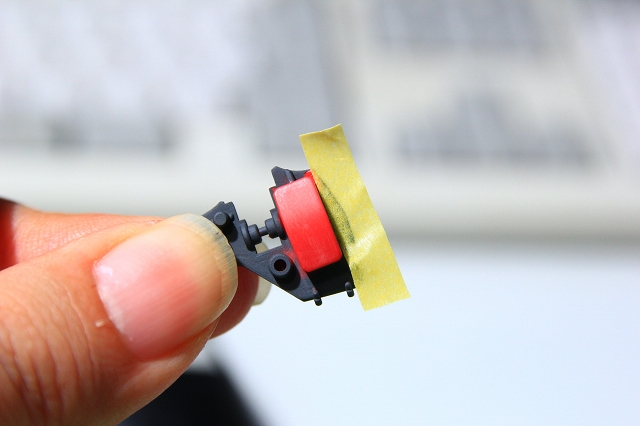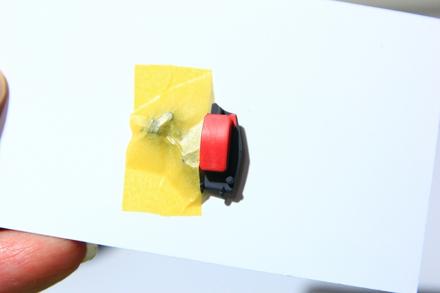 小さい部品をマスキングすると、マスキングテープがめくれてしまう現象があります。たとえばこんな感じ。
