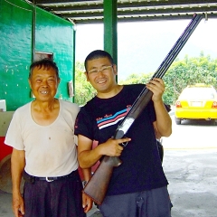 実銃とエアガン両方やってます。写真は海外で出会った「銃の職人さん」です。